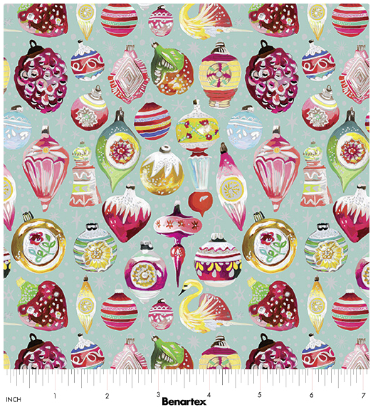 Benartex Magical Season – 16725P-82 Turquoise/Multi Vintage Ornaments