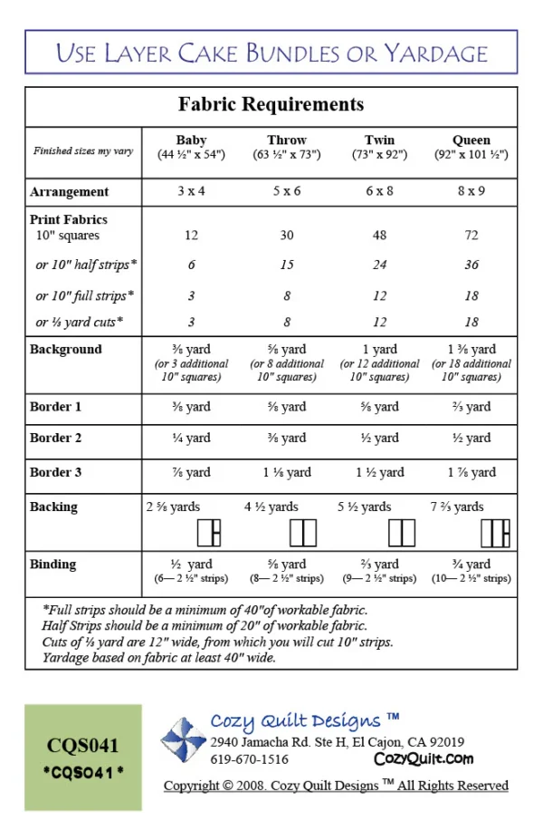 We have yardage available of several fabrics from the line for backing; 4 yards required if non-directional.