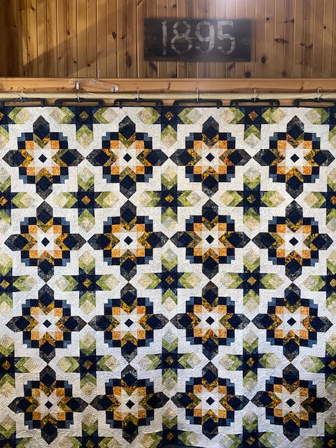 Photo is of King Size quilt and is shown for fabric detail only. Quilt will finish as pictured on pattern cover.