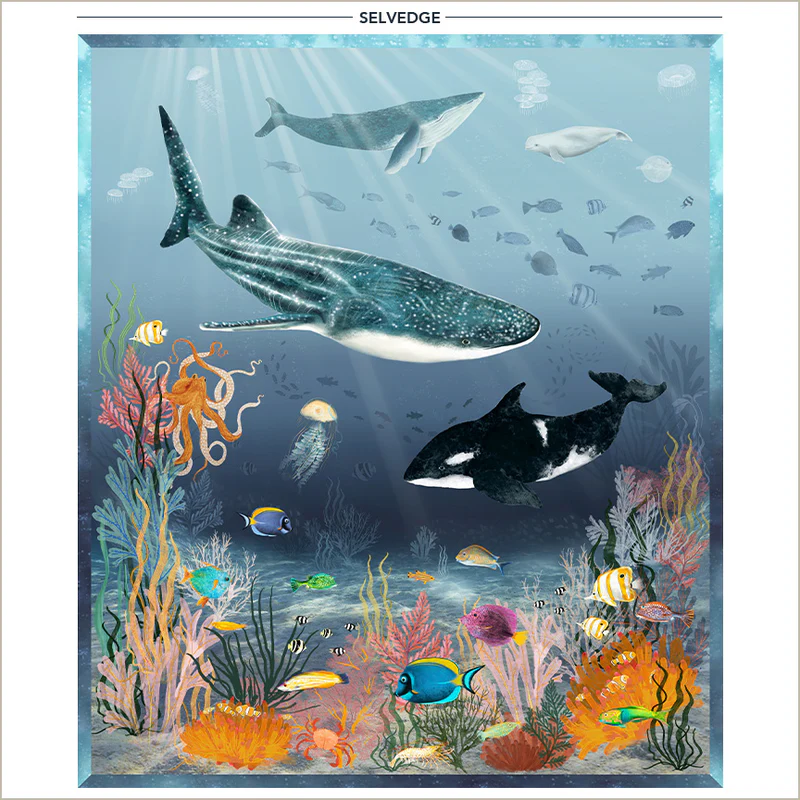 Dive beneath the surface with Katherine Quinn’s breathtaking new collection, Deep Sea. Featuring majestic whales, playful orcas, shimmering schools of fish, and vibrant coral reefs, these fabrics capture the wonder of ocean life in stunning detail.